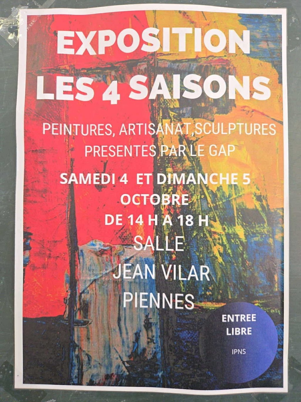 Tout le weekend, profitez d'expositions de peintures, artisanats et sculptures de 14h Ă 18h salle Jean Vilar.