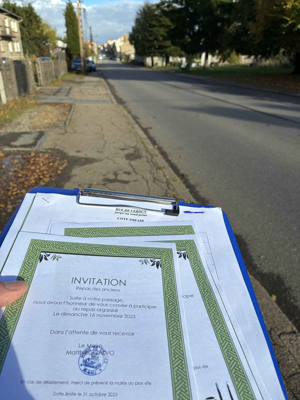 Vos élus ont commencé à passer chez vous pour vous remettre en main propre votre invitation au repas des anciens (65 ans et +).