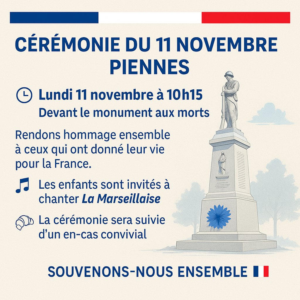La Ville de Piennes vous invite Ă participer Ă la commĂ©moration de lâArmistice de 1918,