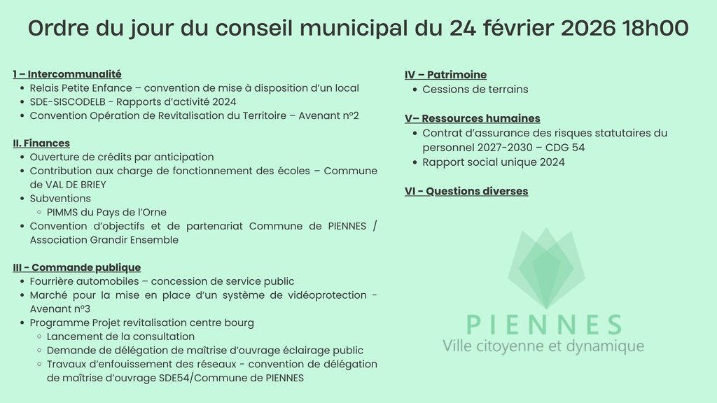 📣 CONSEIL MUNICIPAL – MARDI 24 FÉVRIER 2026 À 18H00