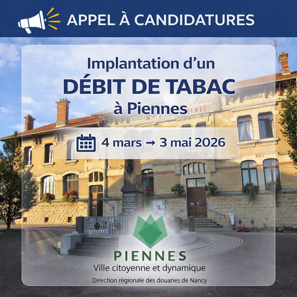 📢 APPEL À CANDIDATURES – IMPLANTATION D’UN DÉBIT DE TABAC À PIENNES