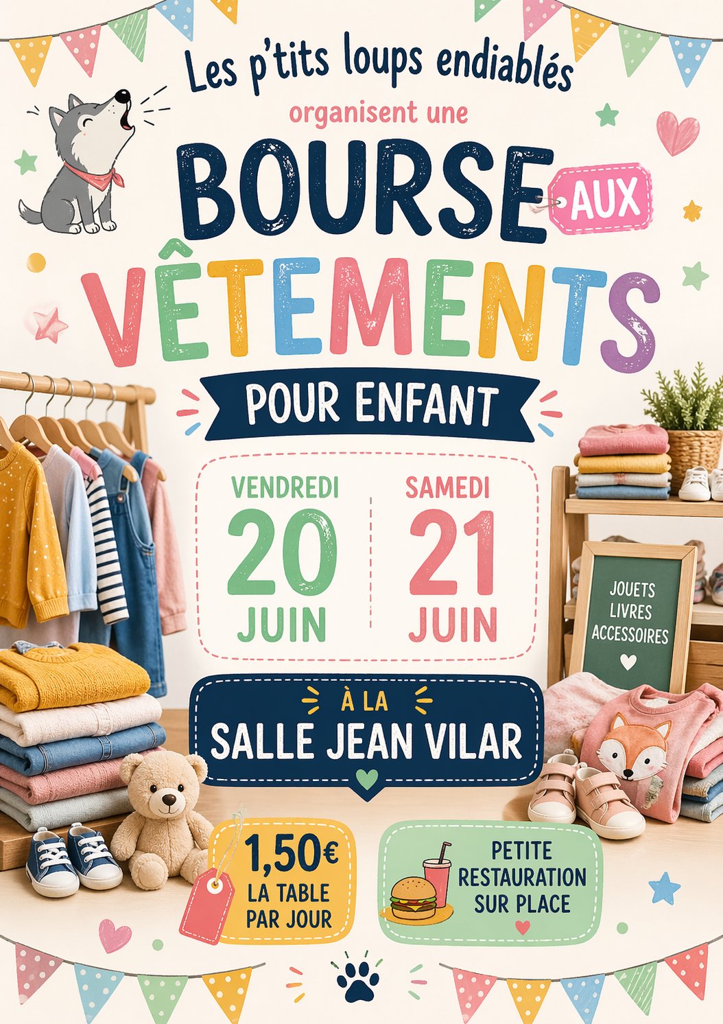 Les p’tits loups endiablés organisent une bourse aux vêtements le 20 et 21 juin à la salle Jean Vilar,