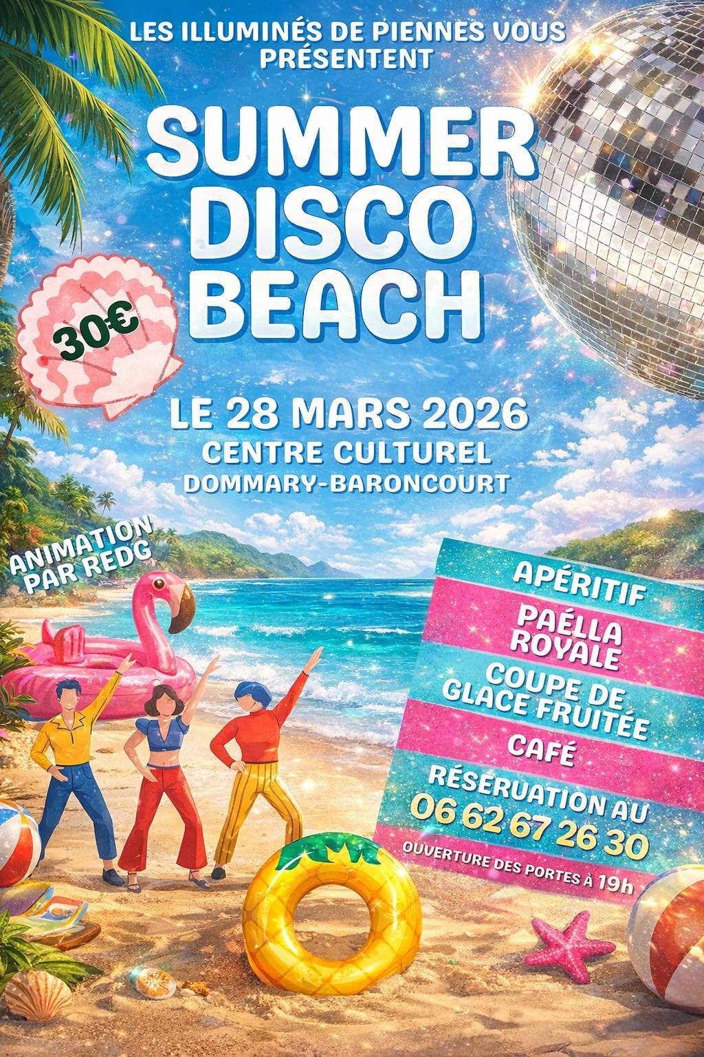 âLe 28 mars, la Summer Disco Beach Party dĂ©barque Ă dommary baroncourt : plage, paella ou lasagnes et Dj RedG pour une soirĂ©e de folie.