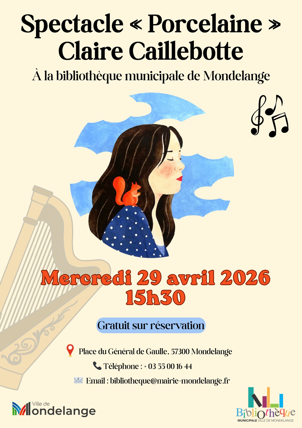 La Ville de Mondelange vous invite à découvrir le spectacle « Porcelaine » de Claire Caillebotte, un moment poétique et musical à partager 📖✨